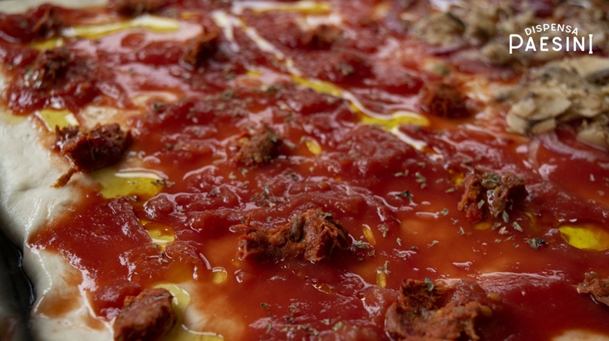 Pizza con ‘nduja calabrese, pomodoro e olive nere